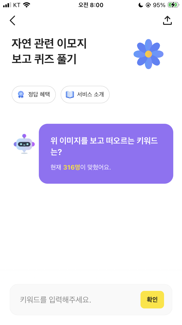 카카오뱅크 ai 이모지 퀴즈 2월 24일 카뱅 문제 정답 자연 관련 이모지 보고 퀴즈 풀기