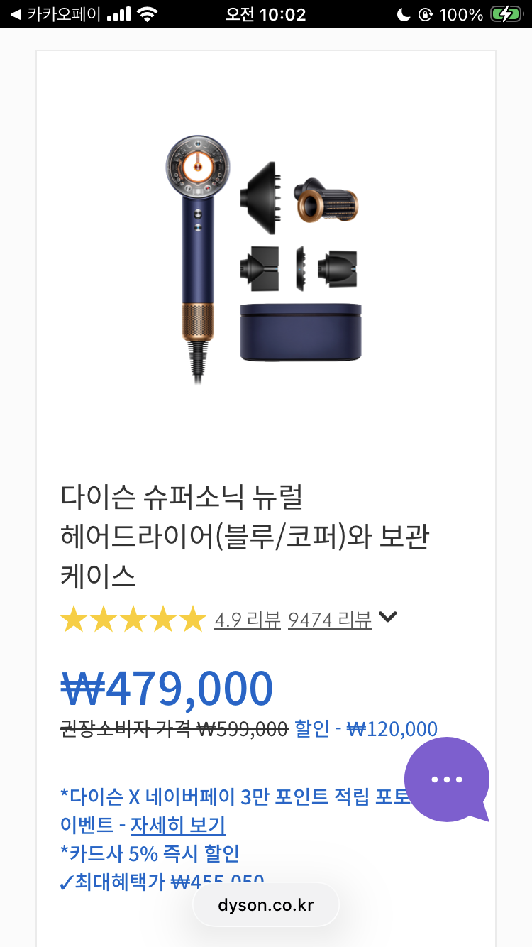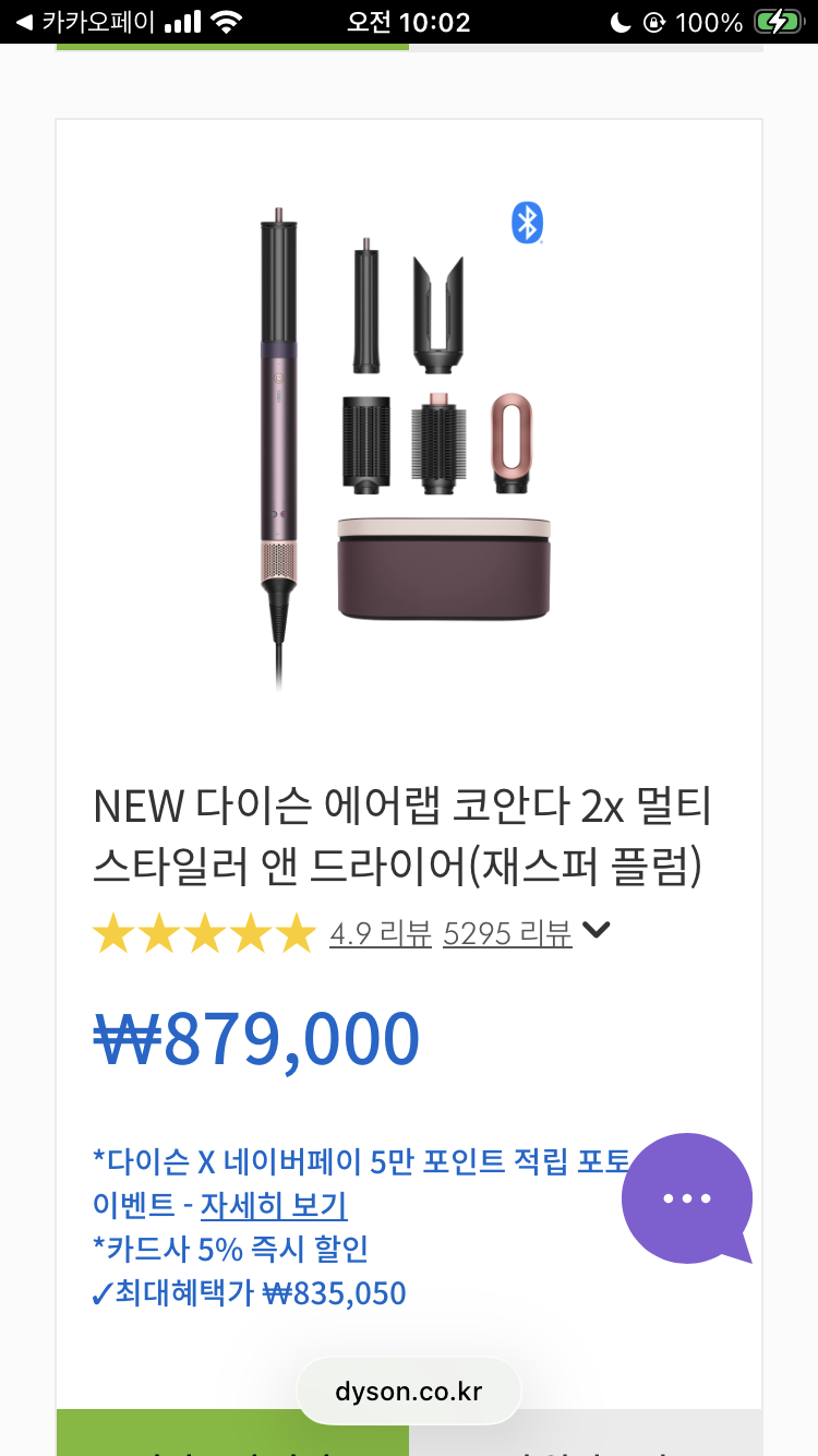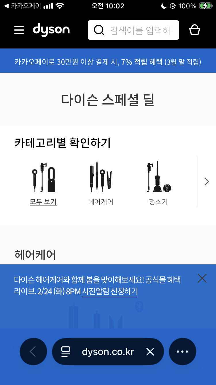 2/24 오후 8시 다이슨 혜택라이브! 카카오페이 결제시 00 적립 혜택까지 라방에서 만나보세요