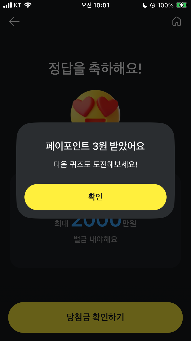 카카오페이 퀴즈 2월 25일 퀴즈타임 문제 정답 내 실수로 불났을 때 최대 0000 만원 벌금 내야 해요