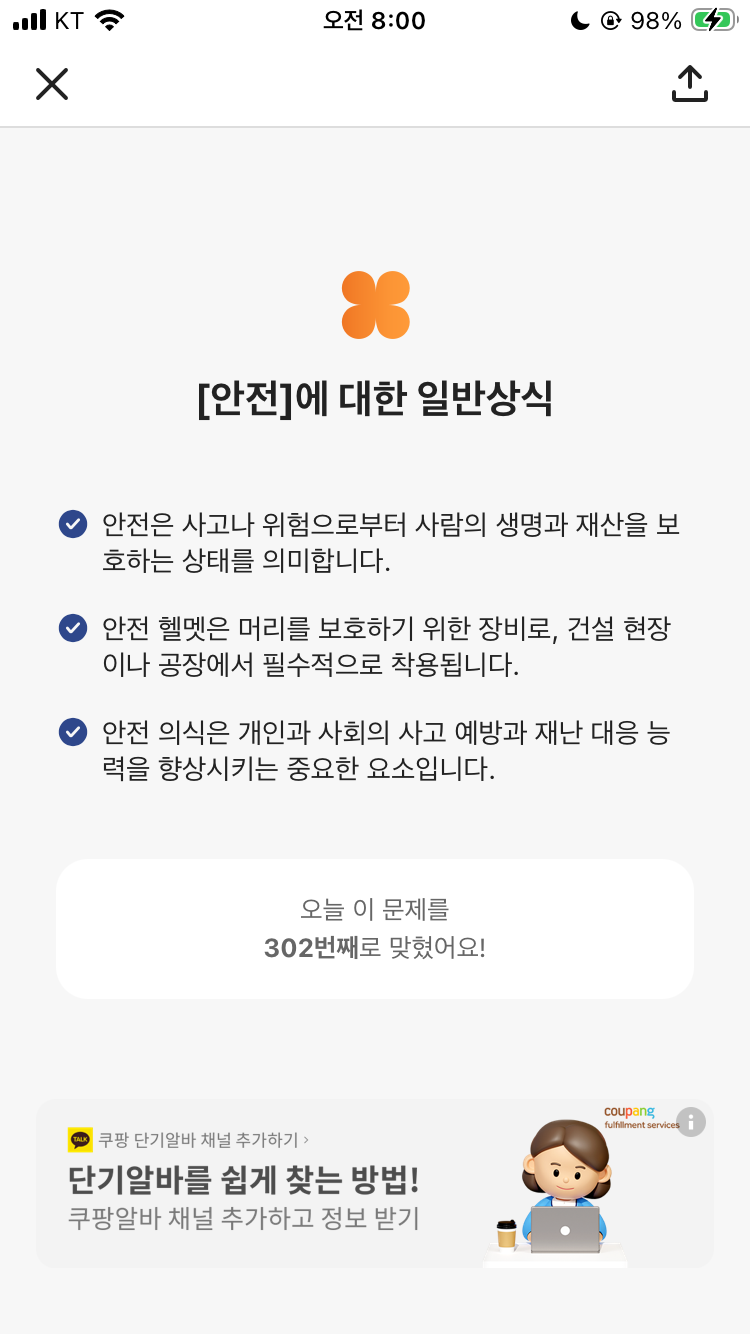 | 카카오페이 퀴즈 2월 25일 퀴즈타임 문제 정답 내 실수로 불났을 때 최대 0000 만원 벌금 내야 해요 (0) | 2026.02.25 |