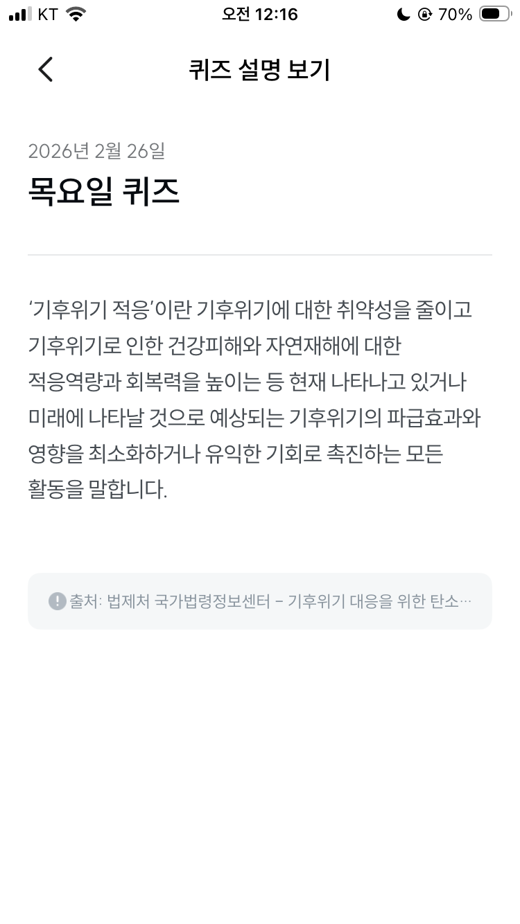 기후동행퀴즈 2월 26일 오늘의 기후행동 퀴즈 정답 문제 입니다
