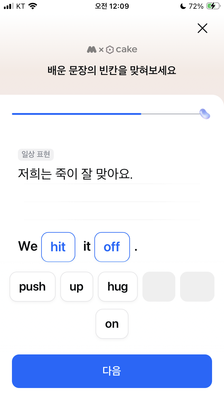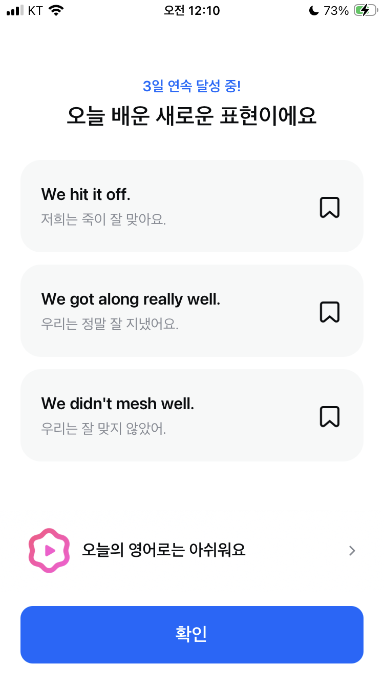 3월 3일 모니모 오늘의 영어공부 혼자하기 일상 영어표현 문제 정답 저희는 죽이 잘 맞아요. hit it off, got along really well, mesh well