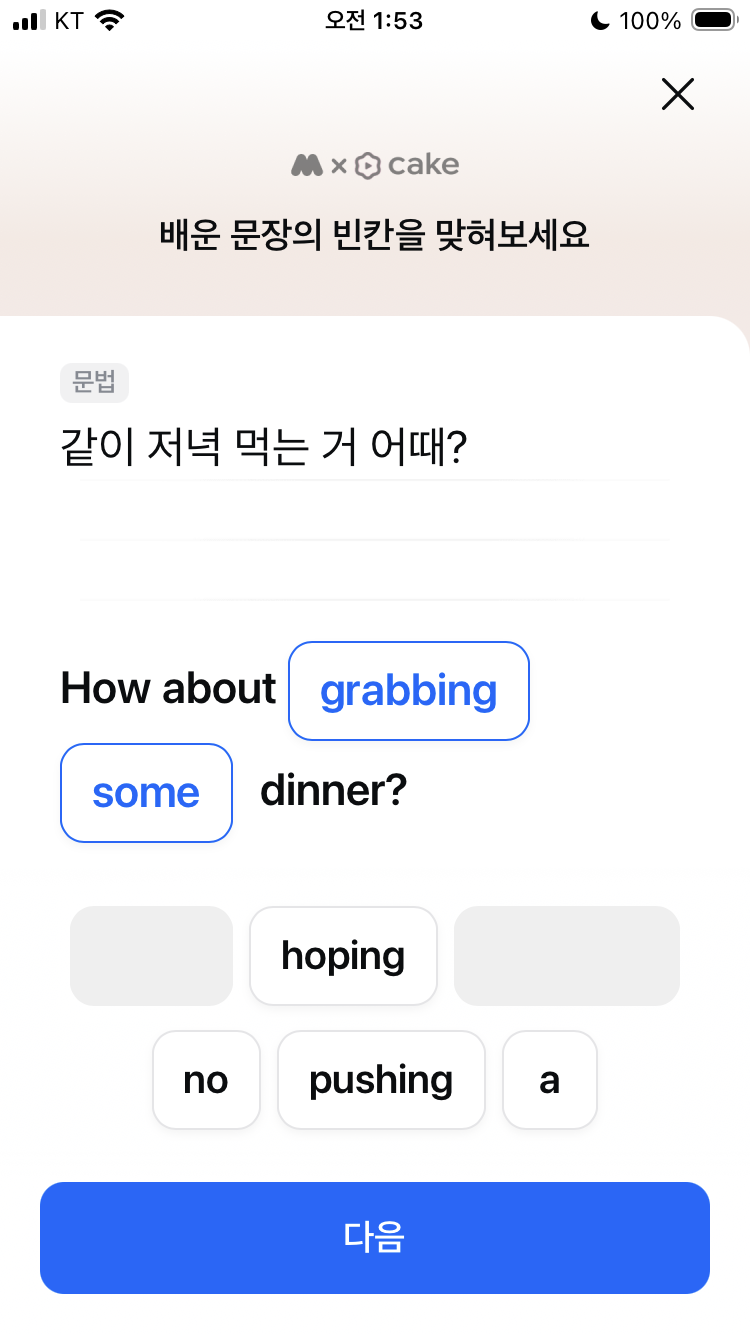 모니모 오늘의 영어공부 3월 6일 초등 영어문법 영어퀴즈 문제 정답 같이 저녁 먹는 거 어때? grabbing some, how going, taking short (2026년)