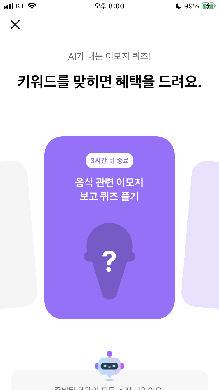 카카오뱅크 ai 이모지 퀴즈 3월 6일 카뱅 문제 오후 8시 정답 음식 관련 이모지 보고 퀴즈 풀기