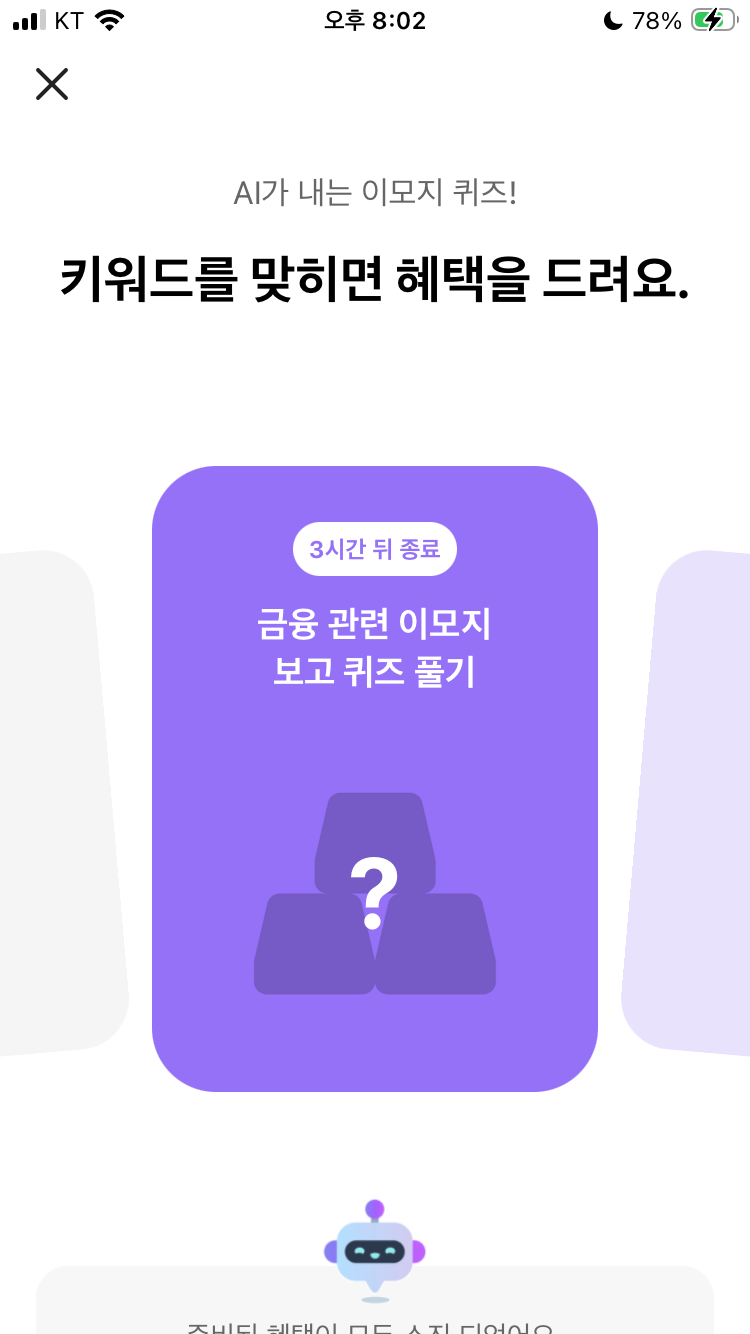 카카오뱅크 ai 이모지 퀴즈 3월 8일 카뱅 문제 정답 오후 8시 금융 관련 이모지 보고 퀴즈 풀기