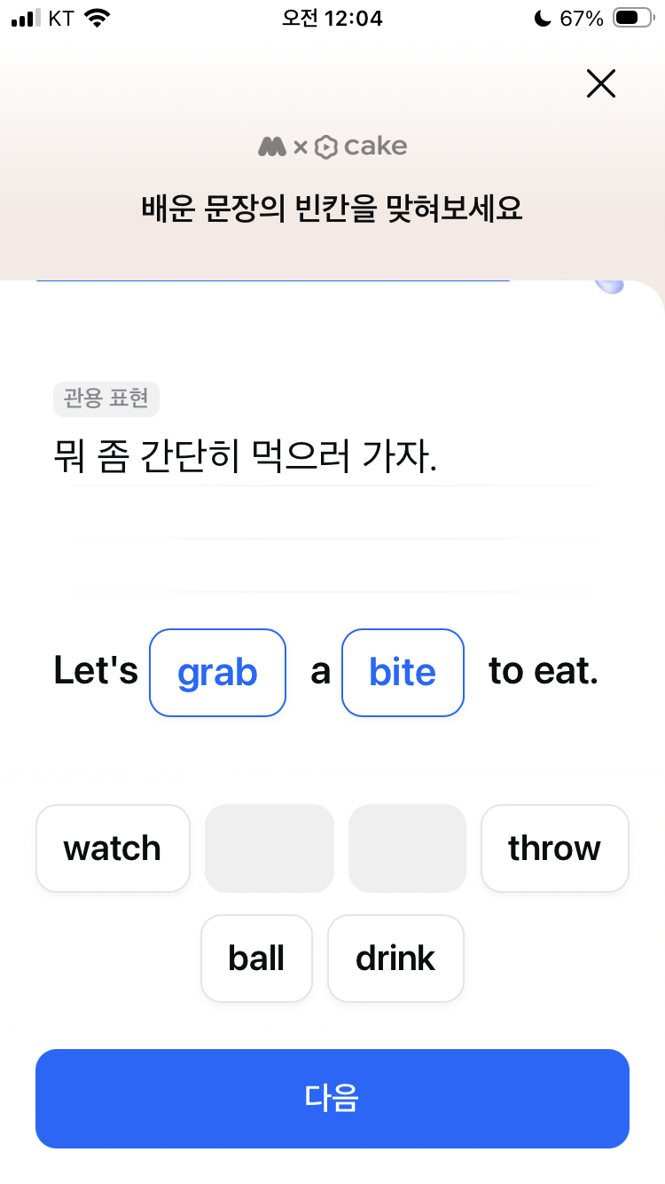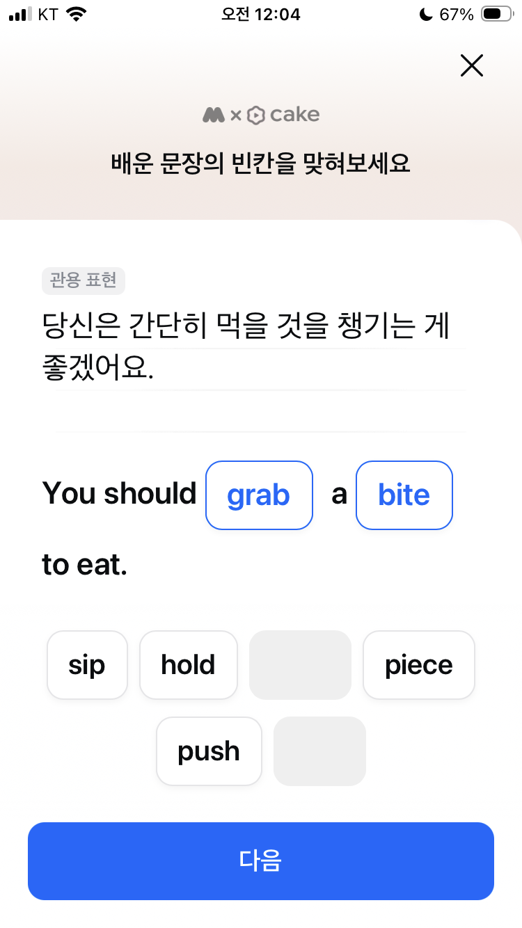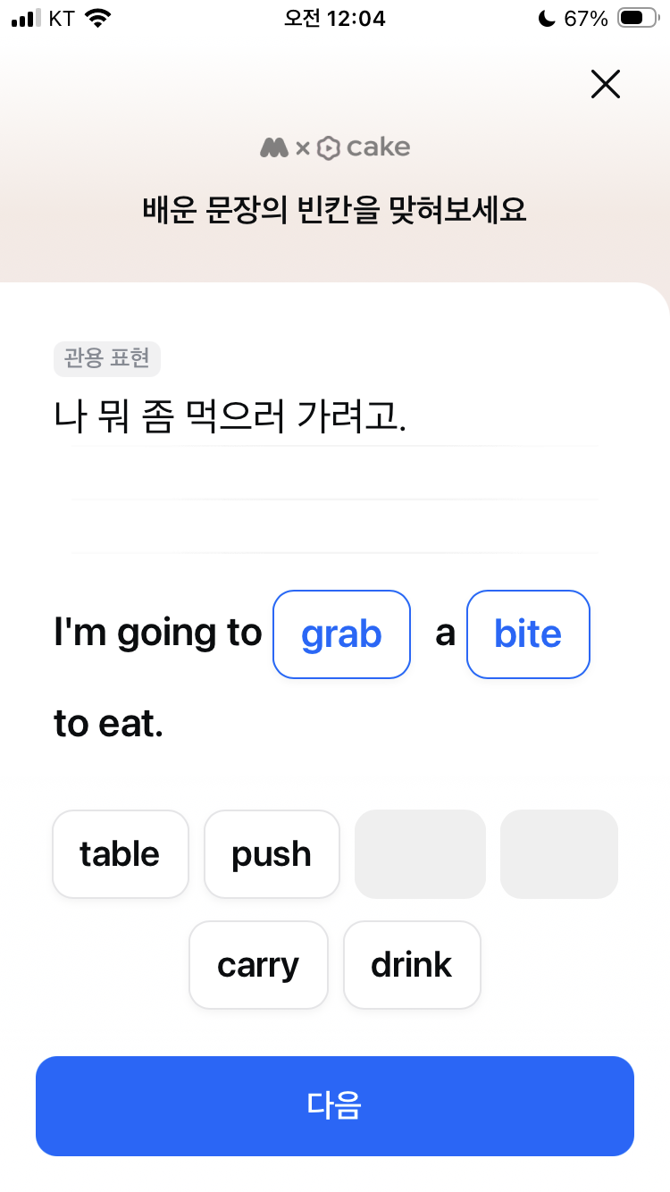 모니모 오늘의 영어공부 3월 10일 중학교 영어표현 영어퀴즈 문제 정답 나 뭐 좀 먹으러 가려고 grab a bite to eat