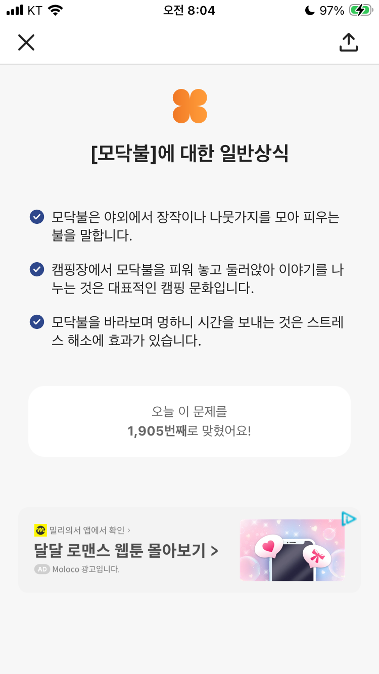 그래서 간신히 정답 모닥불 적었는데요...