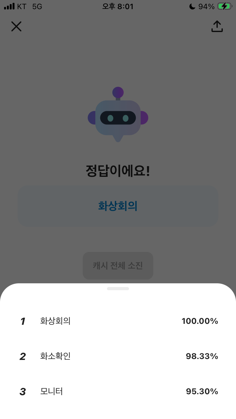 사물 관련 이모지 보고 퀴즈 풀기 가 출제되었는데요