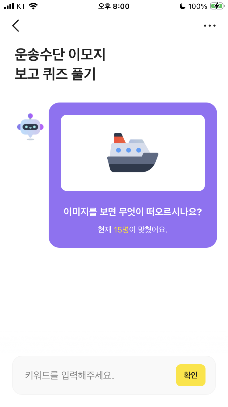 운송수단 이모지 보고 퀴즈 풀기 가 출제되었습니다.