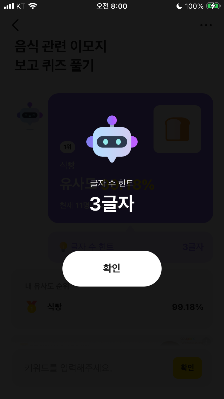 음식 관련 이모지 보고 퀴즈 풀기 가 출제되었습니다
