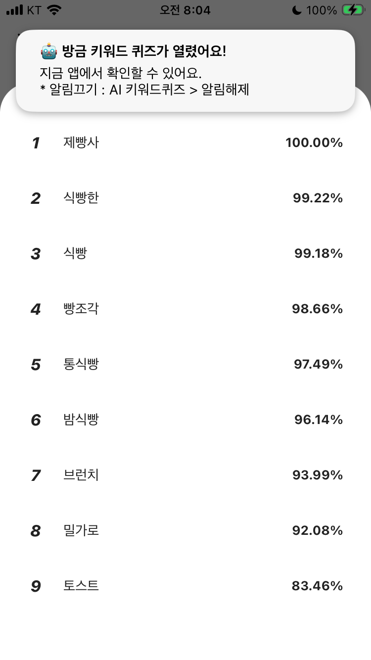 1위: 제빵사 (100.00%)