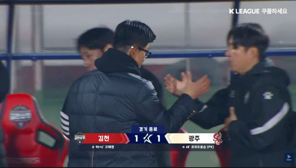 그럼 어제 김천 상무와 광주 경기 결과를 좀 보면...
