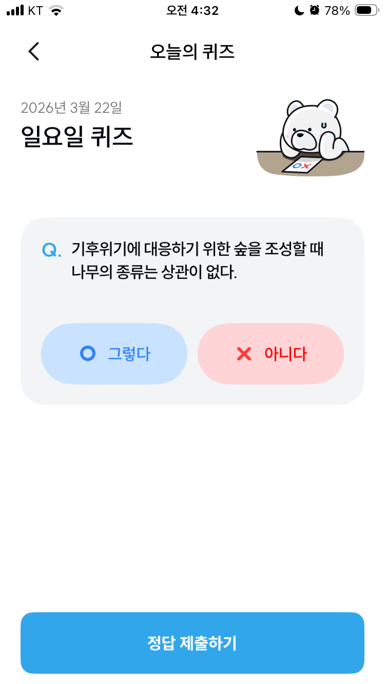 기후동행퀴즈 3월 22일 오늘의 기후행동 퀴즈 정답 문제