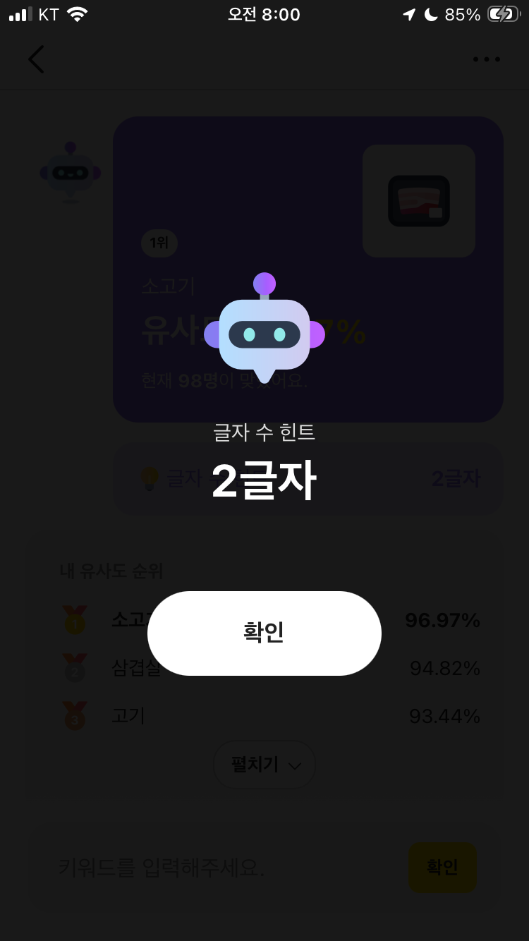 그래서 힌트가 두 자인 것 까진 알았는데요...