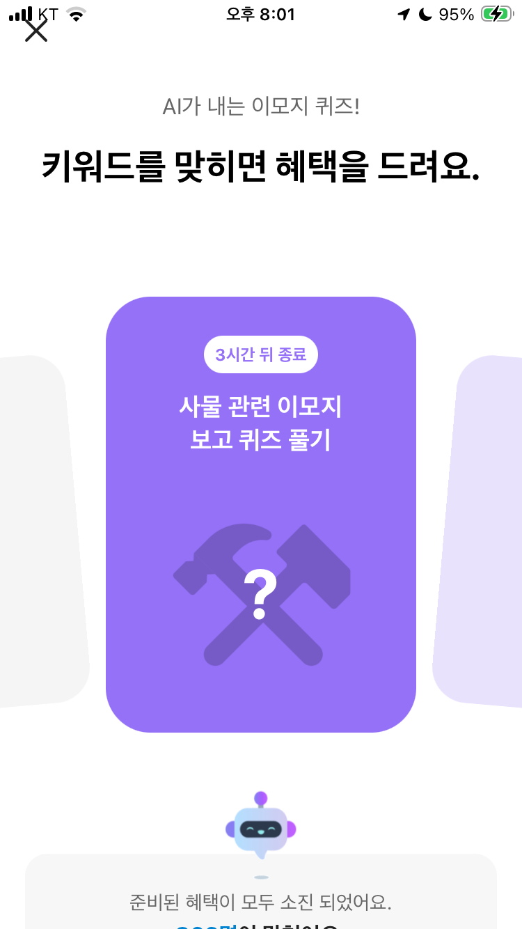 카카오뱅크 ai 이모지 퀴즈 3월 25일 카뱅 문제 정답 오후 8시 사물 관련 이모지 보고 퀴즈 풀기