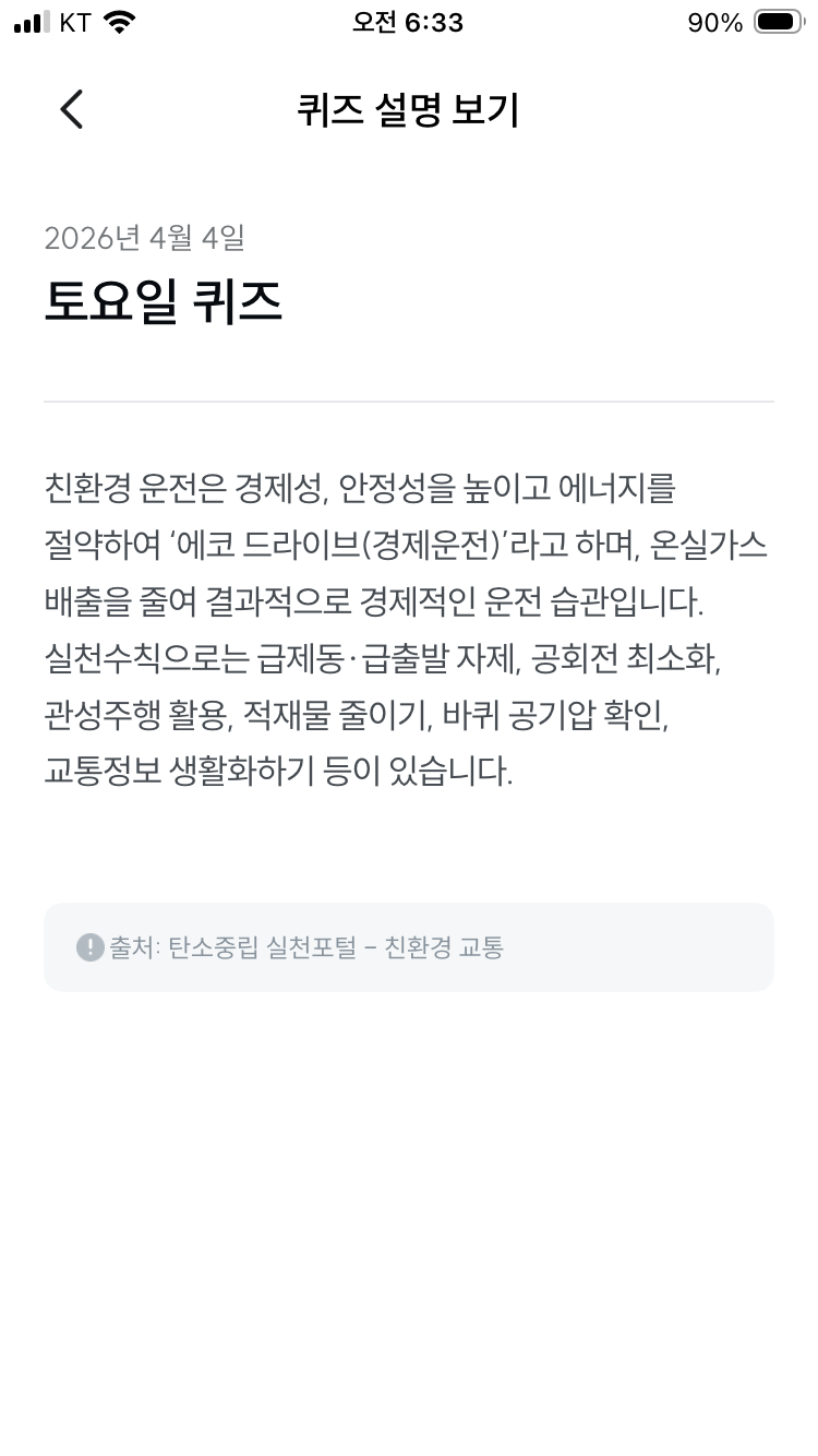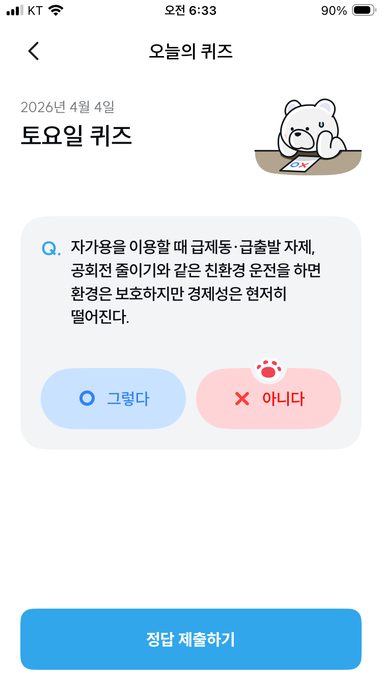 기후동행퀴즈 4월 4일 오늘의 기후행동 퀴즈 정답 문제 친환경 운전 에코 드라이브 뜻