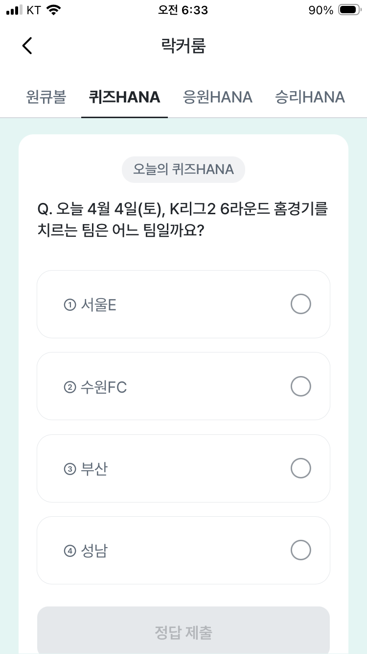 하나원큐퀴즈 4월 4일 축구 문제 정답