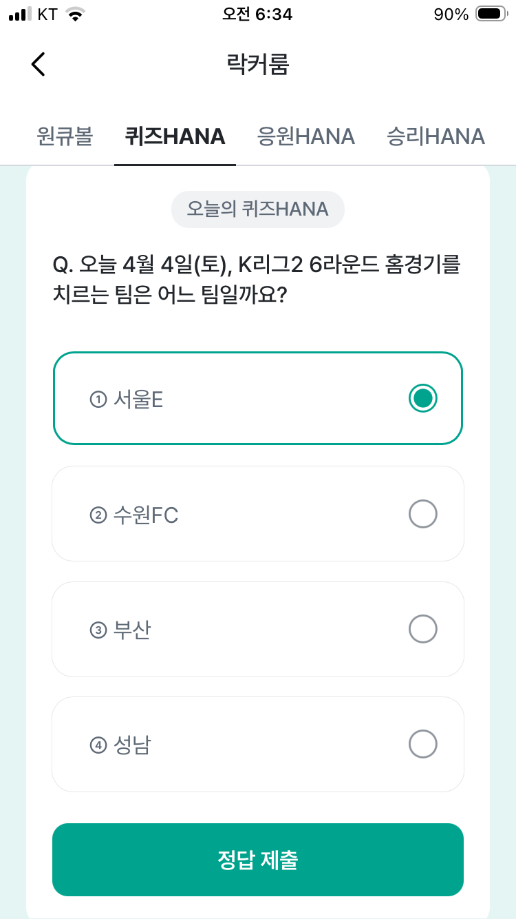 하나원큐퀴즈 4월 4일 축구 문제 정답 오늘 4월 4일(토), K리그2 6라운드 홈경기를 치르는 팀은 어느 팀일까요? (+ K리그2 현재 순위 분석)