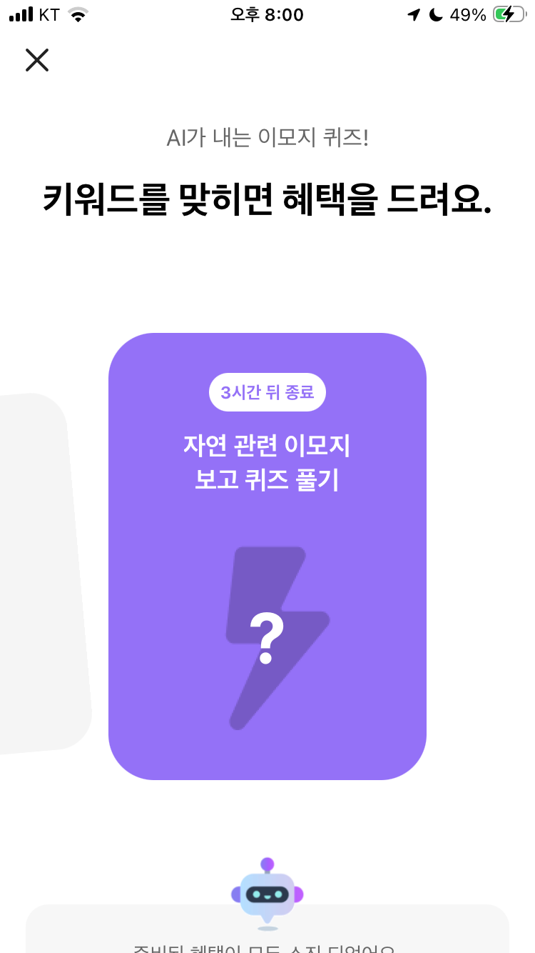 카카오뱅크 ai 이모지 퀴즈 4월 5일 카뱅 문제 정답 오후 8시 자연 관련 이모지 보고 퀴즈 풀기