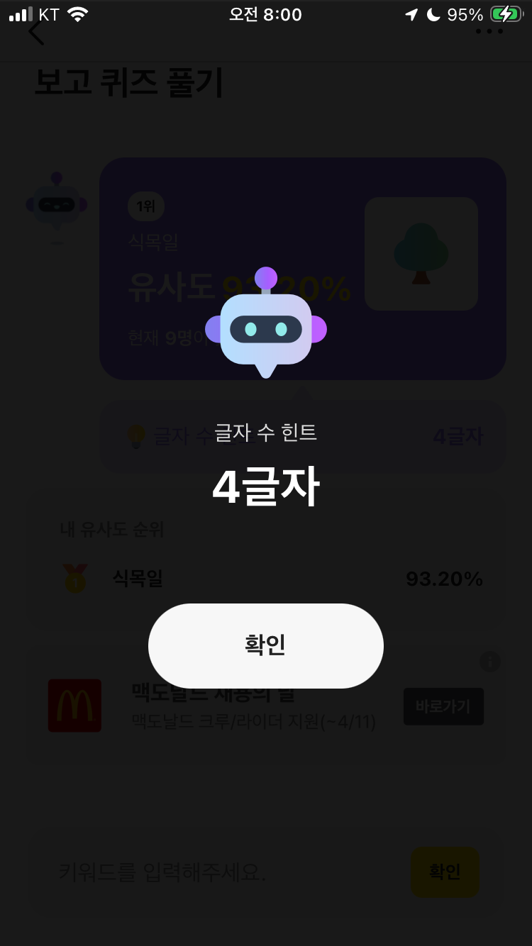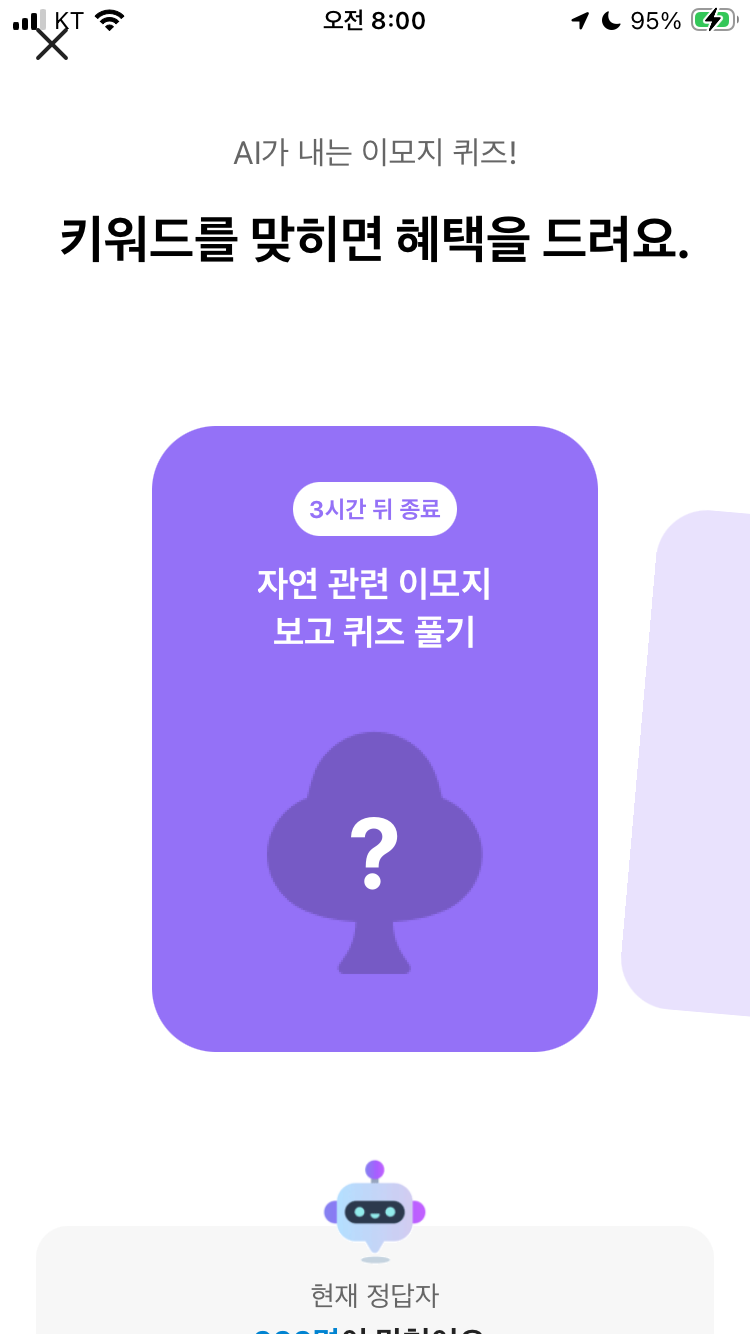 카카오뱅크 ai 이모지 퀴즈 4월 5일 카뱅 문제 정답 오전 8시 자연 관련 이모지 보고 퀴즈 풀기