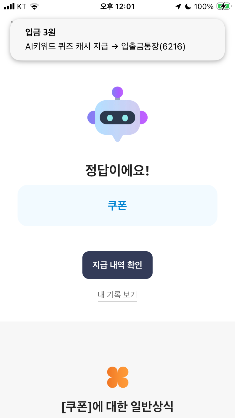 | 카카오뱅크 ai 이모지 퀴즈 4월 6일 카뱅 문제 정답 오전 8시 직잭팟 마지막날 혜택 (0) | 2026.04.06 |