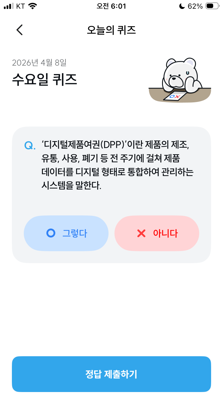 기후동행퀴즈 04월 08일 오늘의 기후행동 퀴즈 정답 문제 디지털제품여권(DPP)’이란