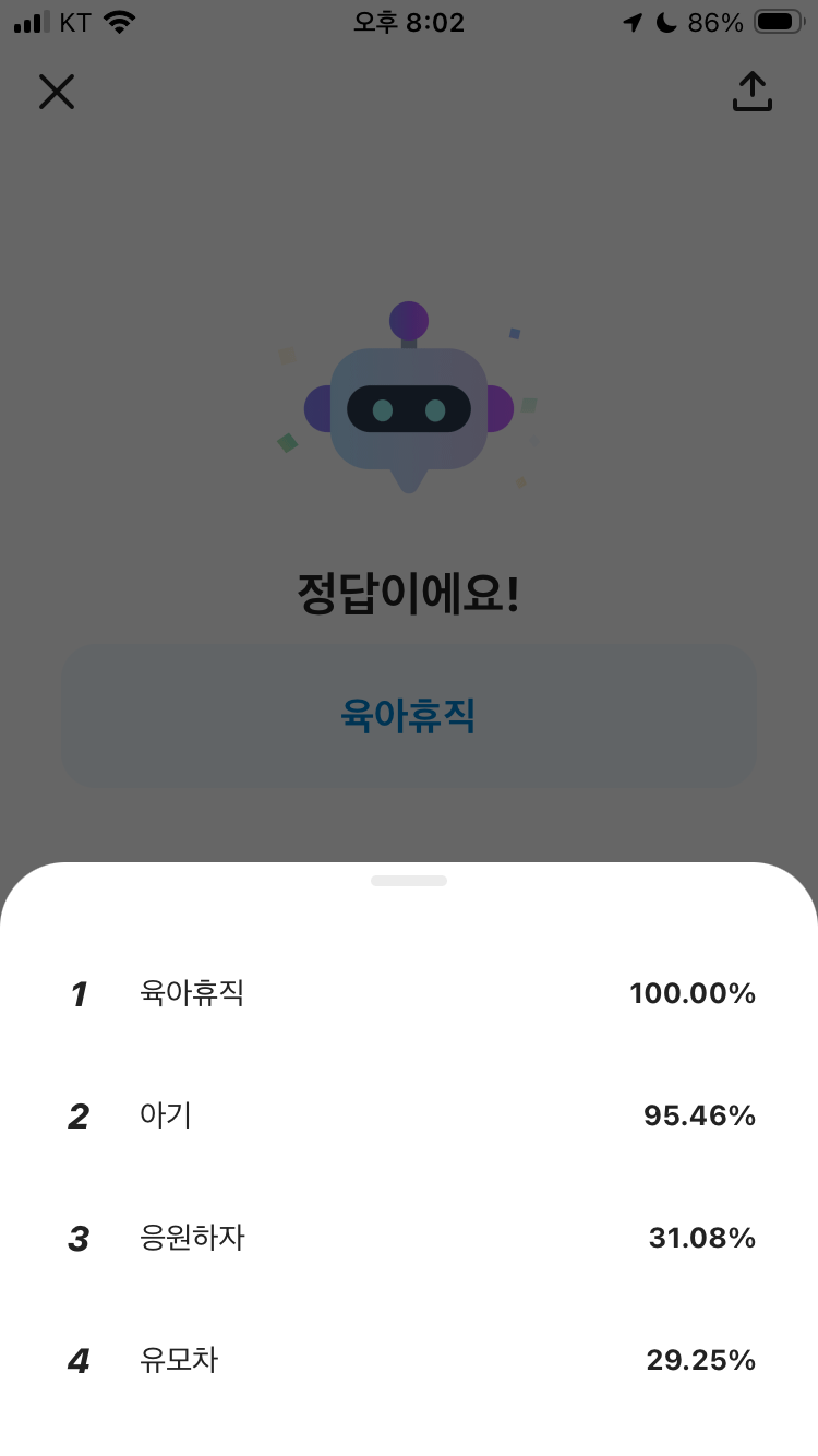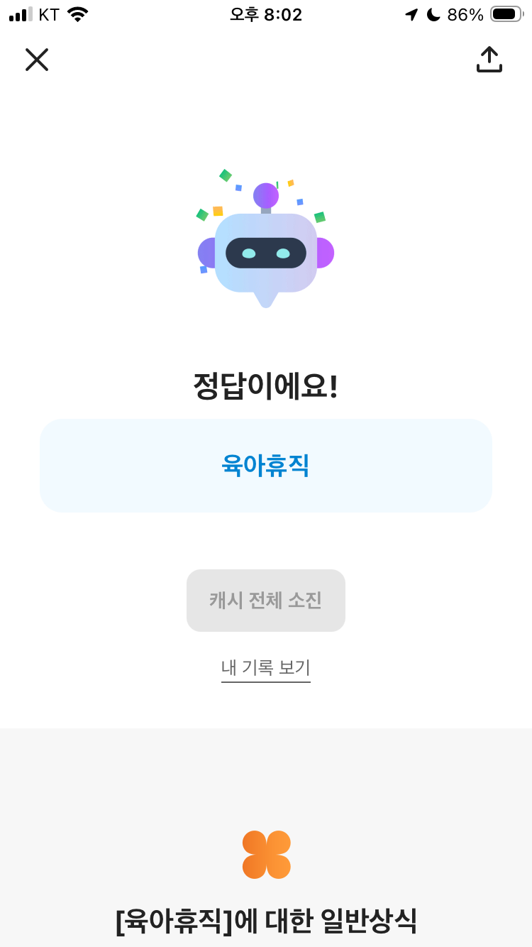 정답 육아휴직 맞혔습니다!