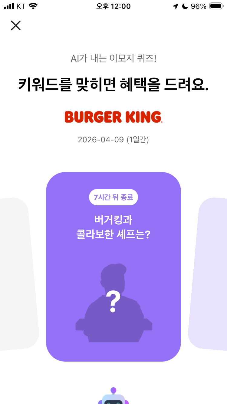 카카오뱅크 ai 이모지 퀴즈 04월 09일 카뱅 문제 정답 오후 12시 버거킹과 콜라보한 셰프는?