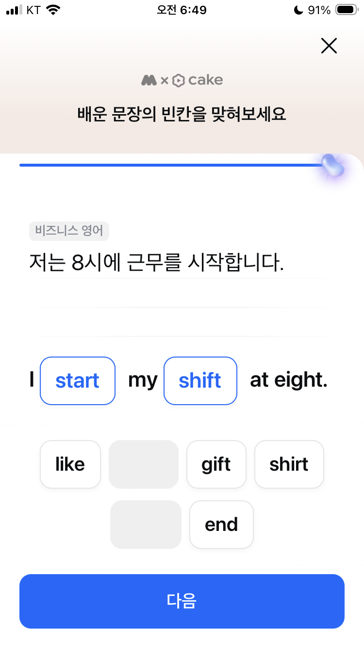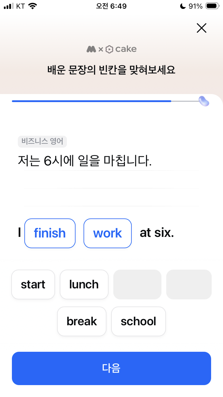 모니모 오늘의 영어공부 04월 11일 비즈니스 영어퀴즈 문제 정답 저 6시에 퇴근해요. get off, finish work, start my shift