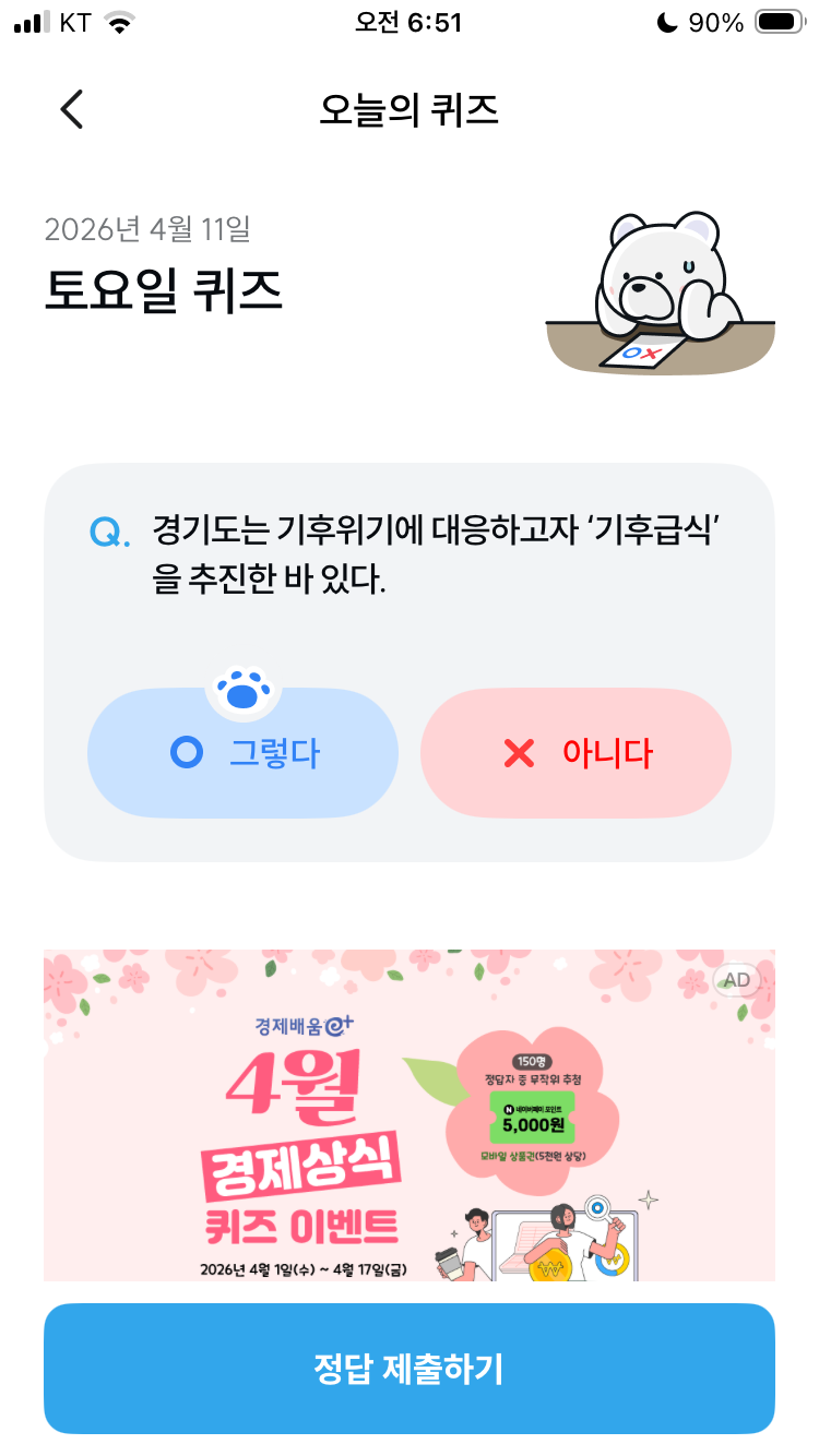 기후동행퀴즈 04월 11일 오늘의 기후행동 퀴즈 정답 문제