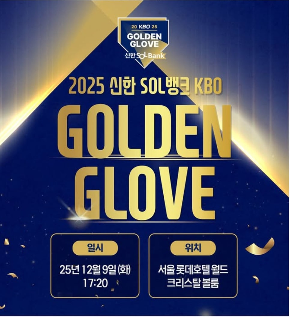 2025 신한 SOL뱅크 KBO 골든글러브 시상식이 12월 9일 화요일 오후 5시 40분 서울 롯데호텔 월드 크리스탈 볼룸에서 개최되는데요,