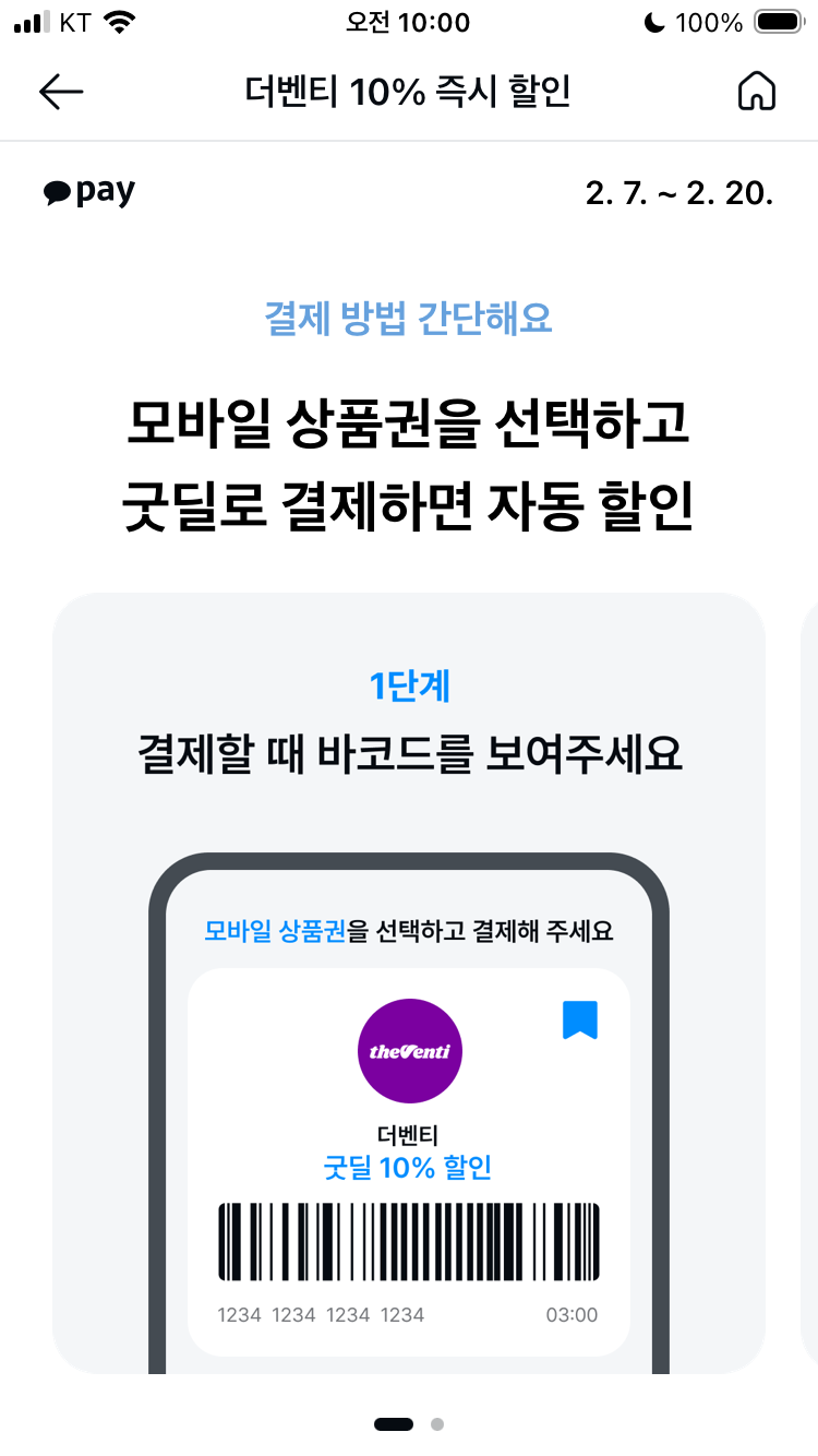 - 혜택 내용: 더벤티에서 결제 시 10% 즉시 할인을 받을 수 있어요.