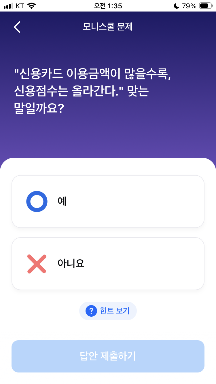 모니모 모니스쿨 2월 22일 퀴즈 문제 정답 4교시 금융영역 문제 오픈 신용카드 신용점수 영향