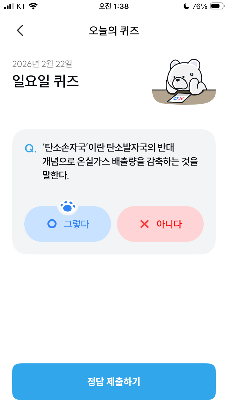 기후동행퀴즈 2월 22일 오늘의 기후행동 퀴즈 정답 문제 인데요