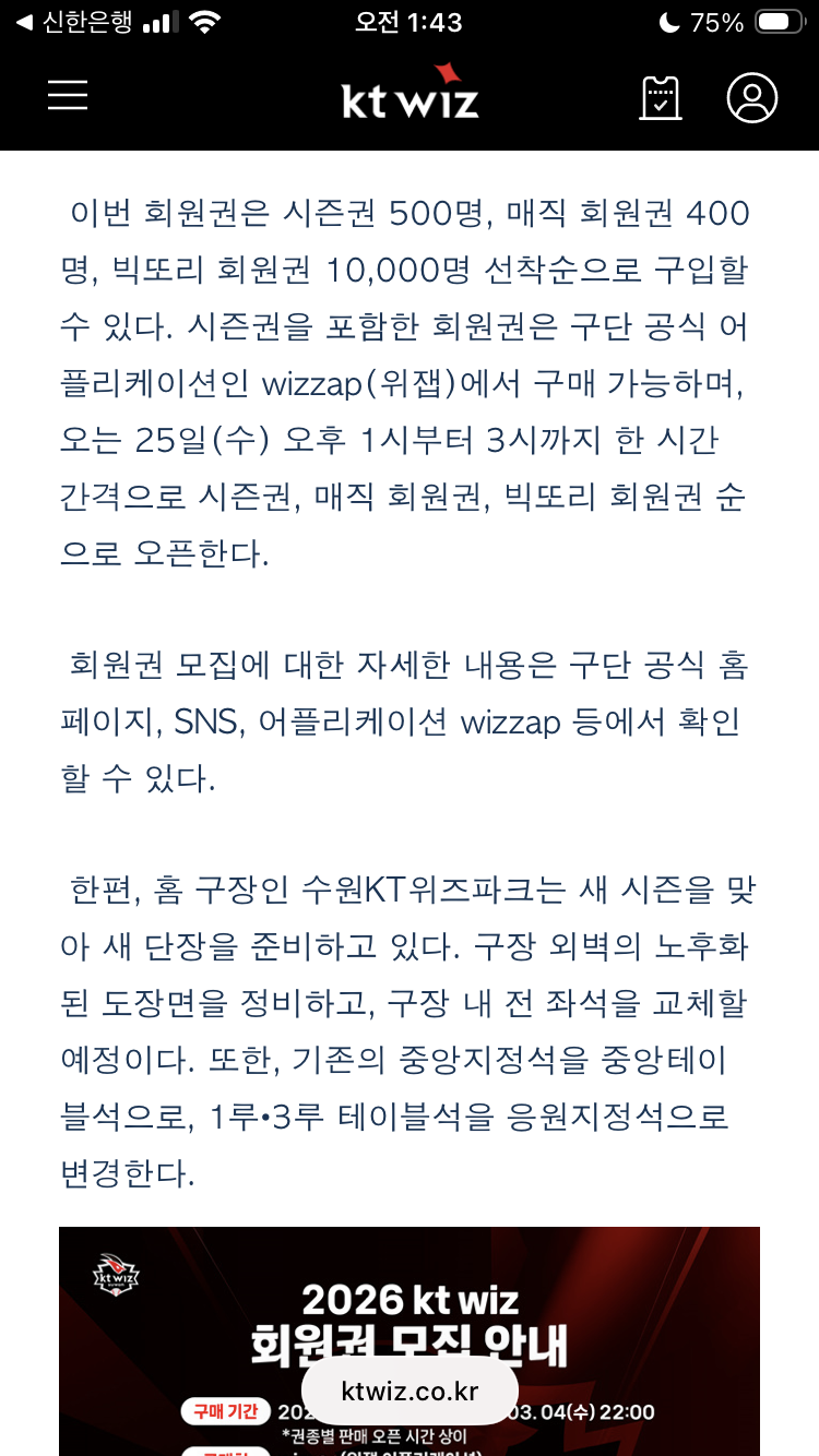 kt wiz 보도자료 내용 확인하기라고...